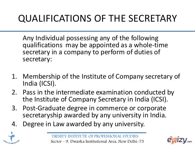 We now move on to consider who you can appoint to the role of company secretary and what qualifications they must possess. Research requirements, salary, and job prospects. After reading this article to learn about: 1. Functions and Duties of the Company Secretary.
